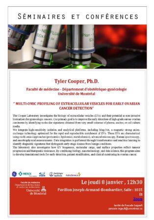 Accueil / Calendrier / CONFÉRENCE ANNULÉE : Multi-omic Profiling of Extracellular Vesicles for Early Ovarian Cancer Detection