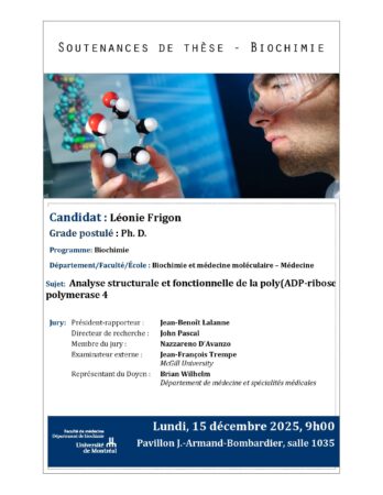 Soutenance de thèse de Léonie Frigon – Biochimie