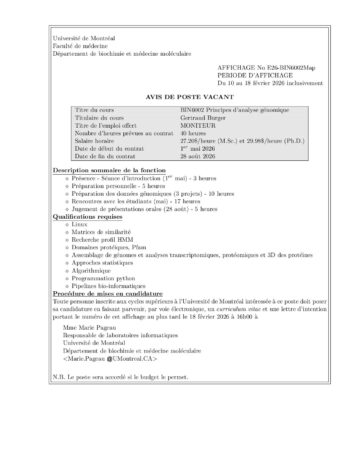 Accueil / Ressources / Emplois durant les études / Auxiliaires d’enseignement bio-informatique / Affichage en cours – BIN / Moniteur