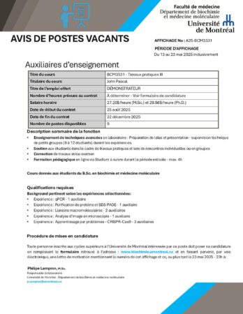Accueil / Ressources / Emplois durant les études / Auxiliaires d’enseignement / Affichage en cours / BCM3531