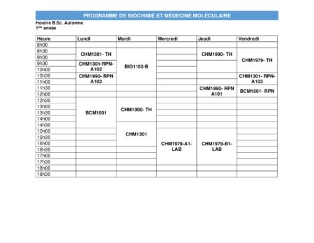 Accueil / Ressources / Guides et formulaires / 1er cycle – Biochimie et médecine moléculaire / Horaire Automne