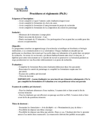 Accueil / Ressources / Guides et formulaires / Cycles supérieurs en Biochimie / Doctorat en biochimie / Procédures et règlements